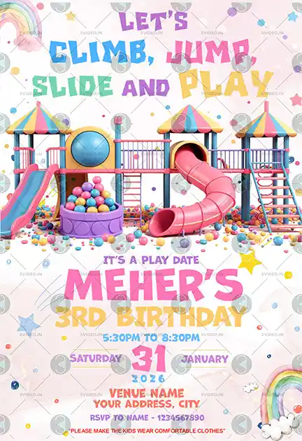 Perfect for playground birthday parties, kids play zone celebrations, indoor play area events, and fun birthday invitations that create excitement before the party begins.