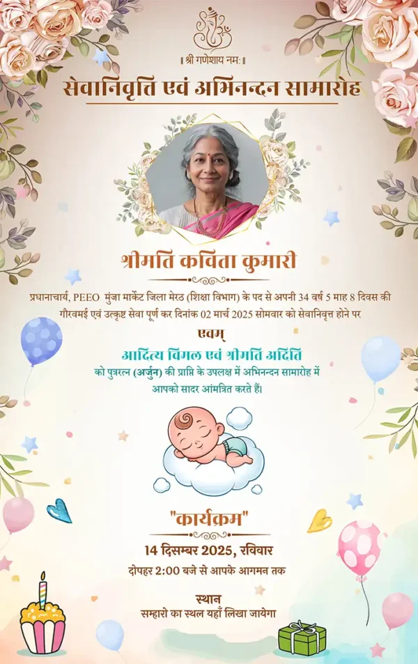 Celebrate two big milestones together with our Retirement and Birthday Invitation Card! Designed to honor a lifetime of achievements and a joyful new chapter, this invite beautifully blends elegance and celebration. Personalize it with the honoree’s name, years of service, birthday details, date, time, and venue. Perfect for digital sharing or printing, this card sets the right tone for a memorable event filled with gratitude, joy, and togetherness.